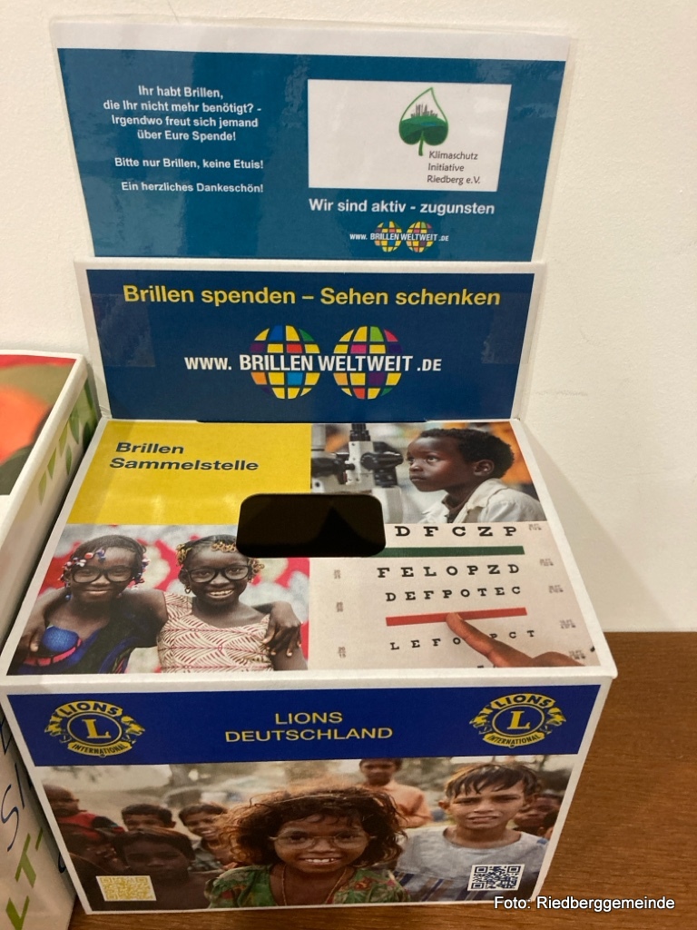 Neben der Handysammelbox steht im Flur eine Box für alte Brillen.