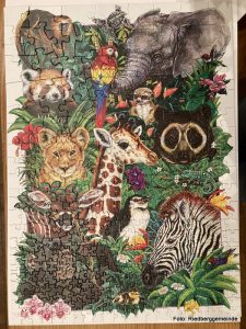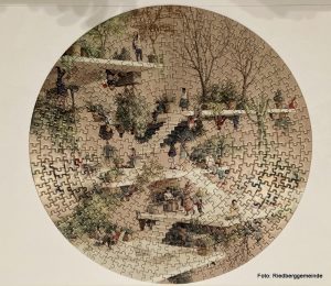 Ja gut, Landschaftspuzzles oder was mit Tieren, das kann ja jeder – ein bisschen vertrackt darf es schon sein. Und die Puzzles, die auf die Tische kommen, sind natürlich mit Bedacht ausgewählt. Das Motto lautet: „Von allem was dabei.“ Und eigentlich hätten die Puzzlerinnen und Puzzler ja auch die Möglichkeit, alle halbe Stunde den Tisch zu wechseln. Doch auch wenn sie in regelmäßigen Abständen dazu aufgefordert werden – die meisten kleben an ihrem Stuhl.