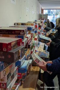 Gleichzeitig ist im Flur vor dem Kirchenraum kaum ein Durchkommen. Dort wird nach den besten Schnäppchen gesucht und besteht das Angebot zu Beginn aus rekordverdächtigen 500 Puzzles, wird es im Laufe des Tages zwar weniger, aber dann auch immer wieder mehr.